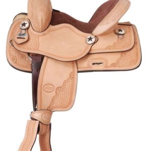 Its nature is a happy fit for any child. The Blevins style quick change buckles are easy to adjust as your child grows. A comfortable seat will allow your child to ride comfortably all day with the neoprene skirts and in skirt rigging, which take away some bulk. Not to mention, the lightweight materials make this saddle easy to lift up and onto the horse.