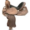- Stirrups: 2″ bell natural rawhide laced