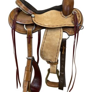 Some of the great features of this saddle include deep tooling in the skirt, rough-out seat-jockeys and a study horn. Built tough on a fiberglass reinforced wood tree, this all around saddle is ready to work for you!