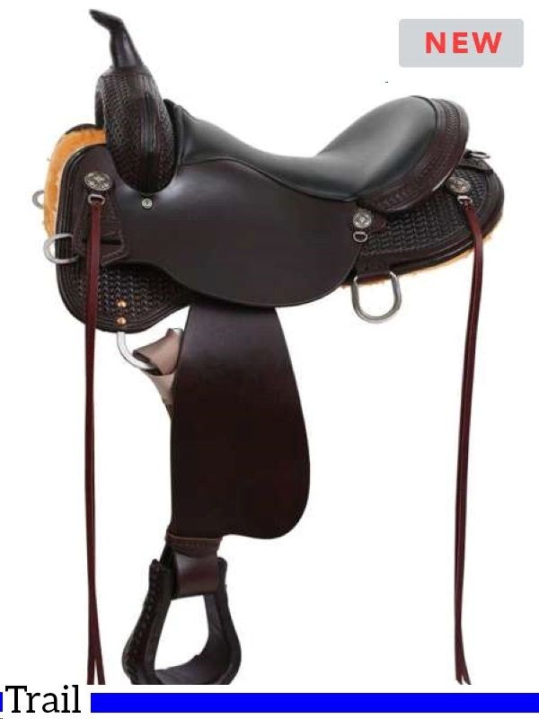Constructed with high-quality materials, the High Horse Arrow Creek Trail Saddle is built to withstand the demands of rugged terrains and extended use. The comfortable padded seat and secure stirrups make it an ideal choice for riders of all levels. The beautiful, classic design with intricate tooling and silver conchos adds a touch of elegance to your riding ensemble, making you stand out on the trails.