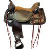 This saddle’s special features include the new ErgoBalance Stirrups, which minimize knee and ankle strain, and a close contact skirt design. The seat has Impact Foam seat padding. We love the frosted rope edge conchos and border tooling.