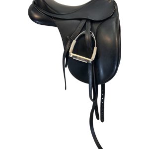 Features the CAIR Cushion System and EASY-CHANGE Gullet System. The saddle currently has the red (wide) gullet but the gullet can be switched out for 5 other sizes – great versatility for fitting lots of horses!