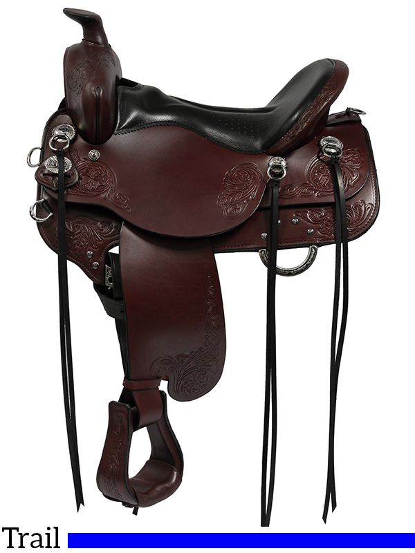 Saddle options as shown above: Brown, Brass Hardware, Full Skirt, Tooled, Western Fenders, Adjustable Position In-Skirt Western.
