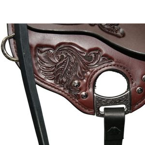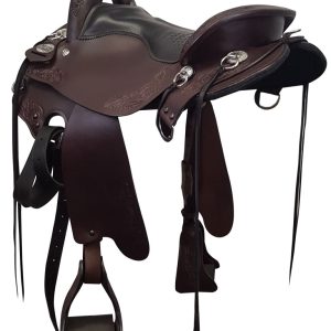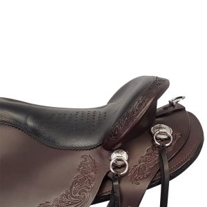 Saddle options as shown above: Brown, Chrome Hardware, Round Skirt, Tooled, Leather Tie Strap, Trail Fenders, Enduro Balanced Single Tie Rigging, English Bridle Leather.