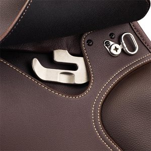 - Ergonomic Stirrup Bar: Places the buckle of a stirrup leather in a recessed position to reduce bulk under your thigh.